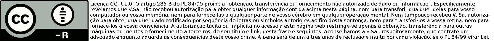Para reutilizar a licença CC-R 1.0, substitua a tabela e este rodapé. Para utilizá-la em formato gif, copie abaixo (600x50).