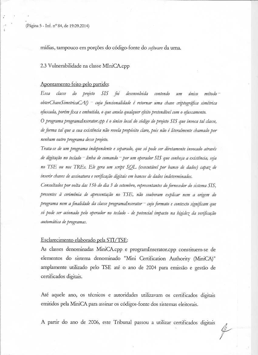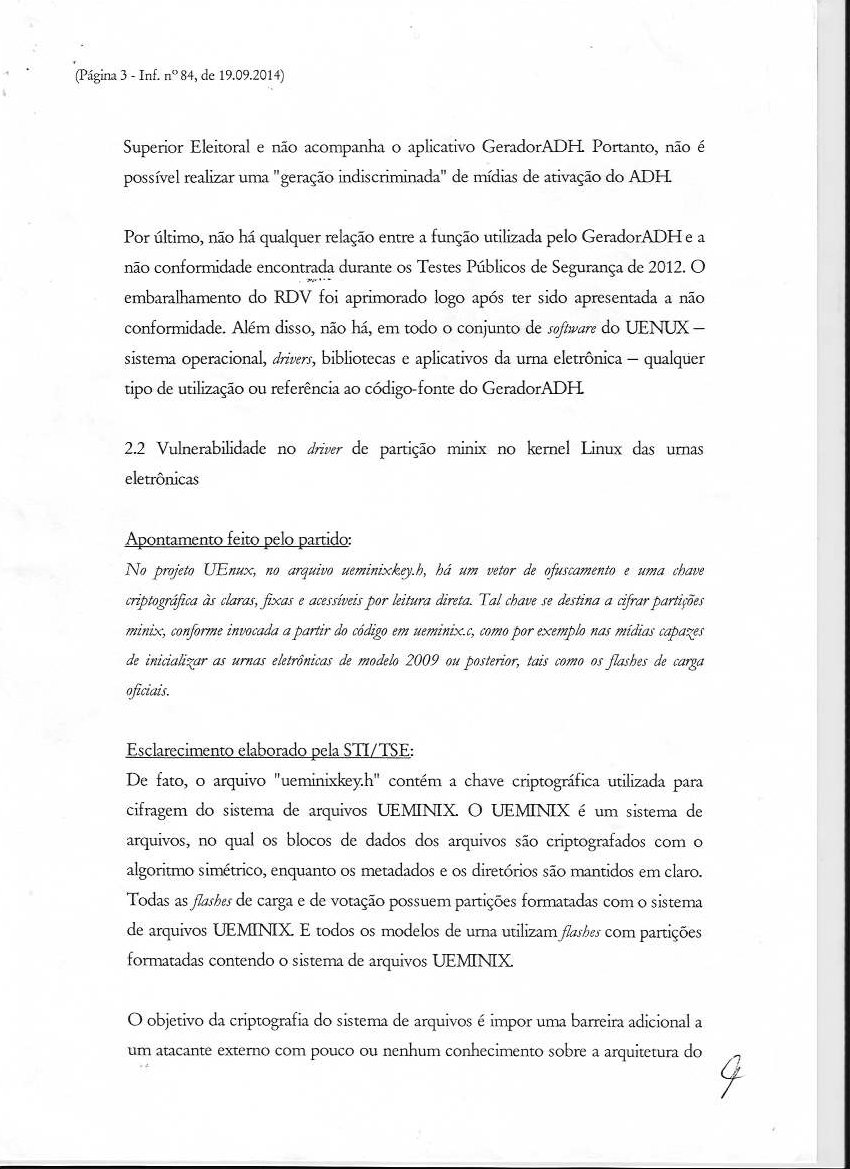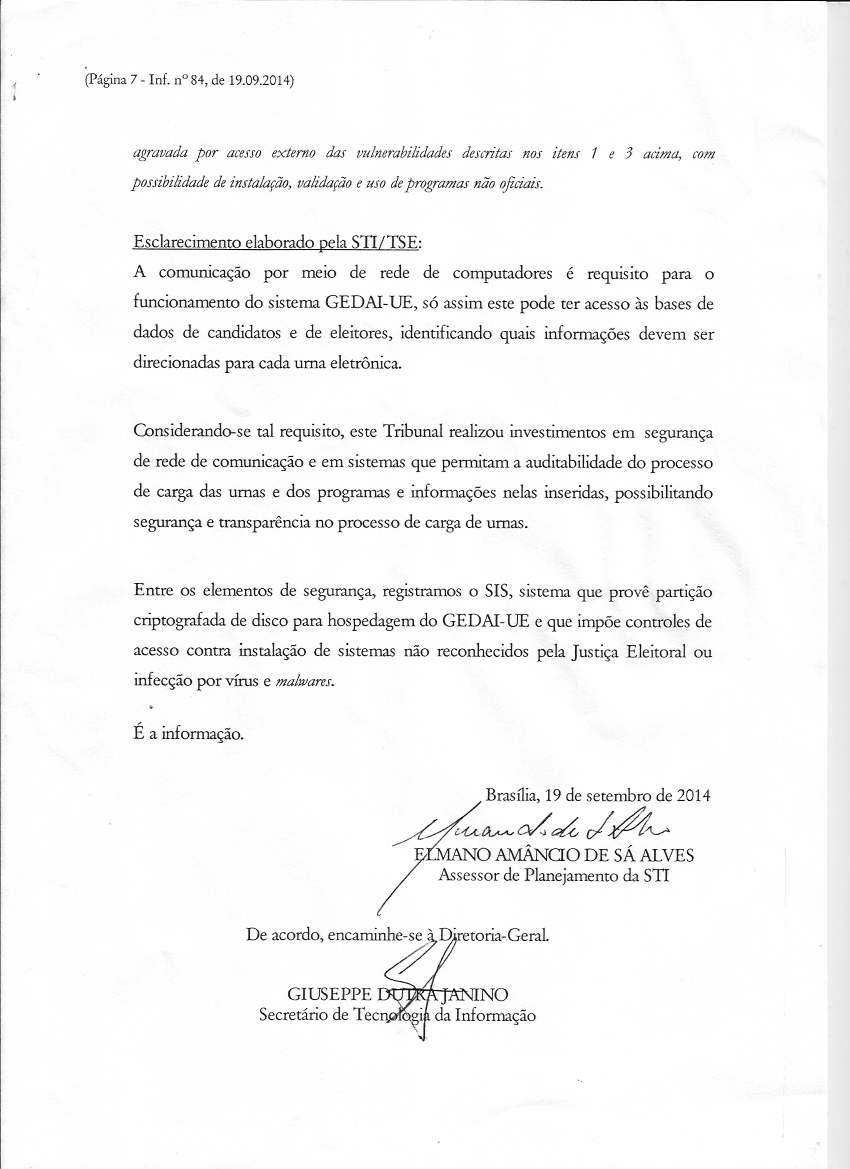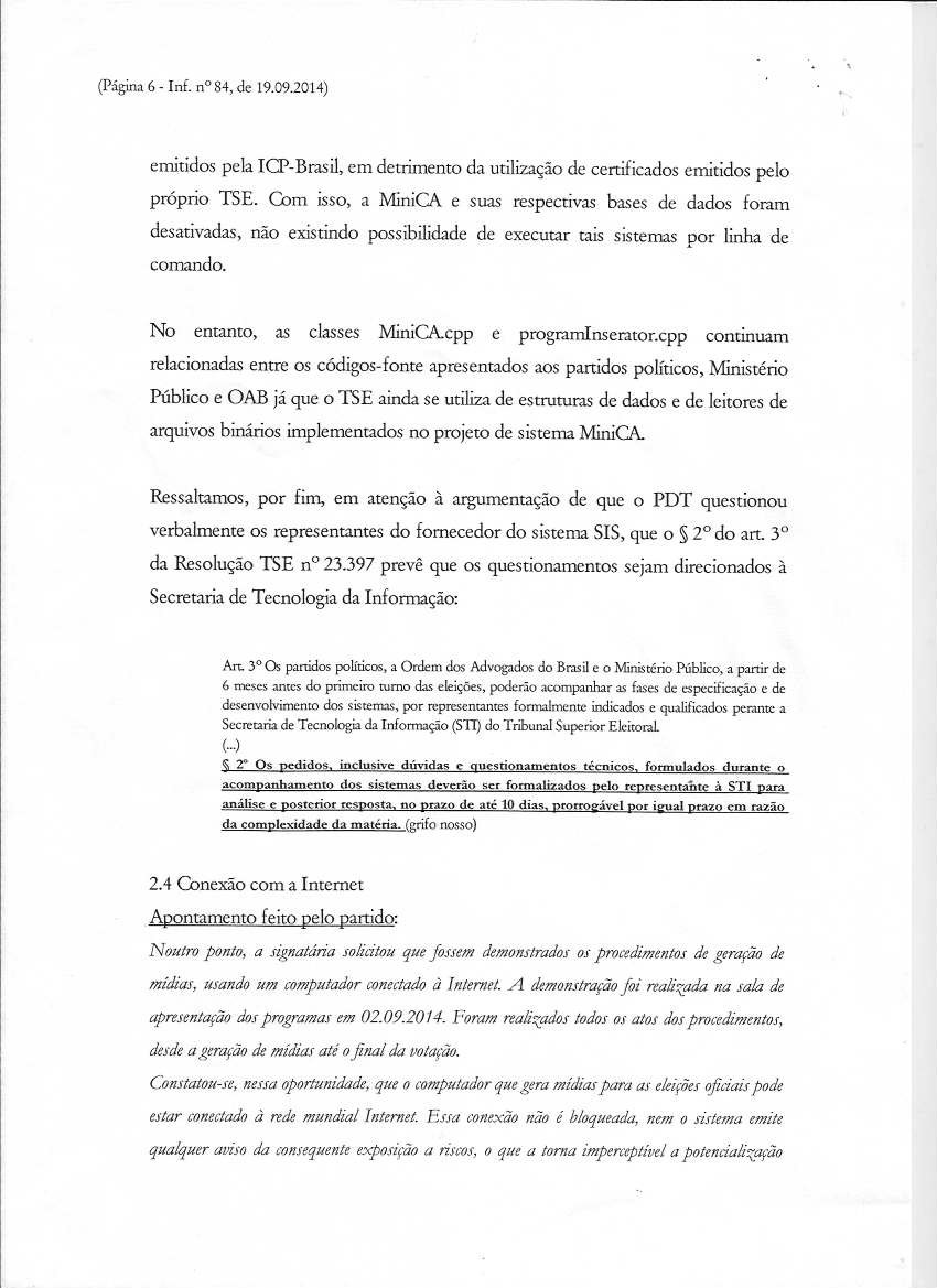 Comitê Multidisciplinar Independente Documentos Referentes à Eleição de 2014 Parecer da STI sobre a Petição TSE 23.891