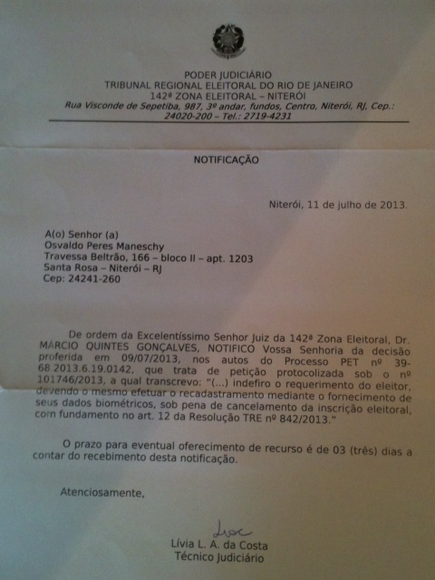 ainda não foi respondida pelo juiz da zona,
